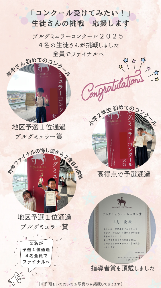 私は息子にはピアノを習わせなかったのですが、今になり、やっぱり習わせておけば良かったかな…と思うほど、今在籍されている生徒さんの精神面の成長には目を見張るものがあります。